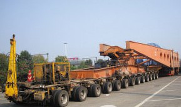 普通小車4個,貨車8到12個,6軸的半掛車最多也就22個輪子。但據(jù)報道此車有230個輪子,為兩節(jié)4線13軸的雙輪共計108個輪子,加上兩個牽引頭共計22個輪子(應(yīng)該是一個6X4的一個8X4的),一共230個輪子。
