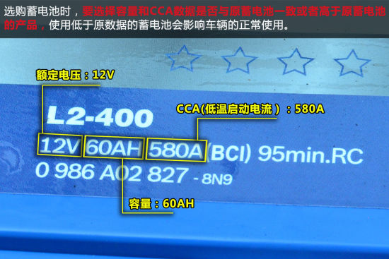 在選購(gòu)新的車輛蓄電池時(shí)要留意容量和CCA的參數(shù), 與原蓄電池參數(shù)一致或者高于原參數(shù)的蓄電池均可以購(gòu)買使用,而使用低于原蓄電池參數(shù)的蓄電池則很有可能影響車輛的正常使用。而且還要留意蓄電池正負(fù)極樁頭的位置,若與原蓄電池電極樁頭位置相反,有可能導(dǎo)致新蓄電池?zé)o法安裝。