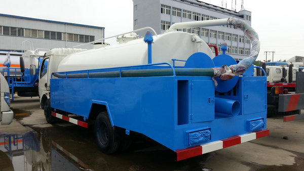 例如下面這款車型,采用高壓清洗車的外觀,但是通過加裝真空吸糞裝置,同時(shí)實(shí)現(xiàn)真空吸糞車和高壓清洗車的功能,成為了一輛高壓清洗吸糞車,也屬于聯(lián)合疏通車的一種。一車兩用,節(jié)約了一輛車的上牌、保險(xiǎn)、維護(hù)、司機(jī)等費(fèi)用。外型美觀,使用方便,排放清潔。
