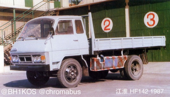 1987年江淮在原有底盤基礎(chǔ)上開發(fā)的FH142C型三噸汽車。當年江淮加入了解放汽車工業(yè)聯(lián)營公司(一汽集團),成為聯(lián)營公司內(nèi)3噸載貨汽車定點生產(chǎn)廠,產(chǎn)品納入解放型譜。