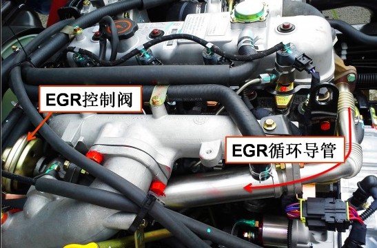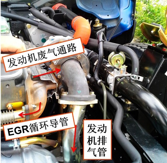 二、找EGR系統(tǒng)的廢氣循環(huán)導管和EGR閥門。廢氣循環(huán)導管與排氣管相連,取一部分廢氣再循環(huán),另一部分廢氣則從排氣管排出。