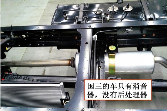 三、找DOC+POC后處理系統(tǒng)。這是最容易辨識的標志,只需要蹲下來從車底看排氣管上是否有兩個柱形罐狀裝置。國III車只有一個,即消音器;而國IV車則有兩個,其一為消音器,另一為DOC+POC后處理系統(tǒng)。