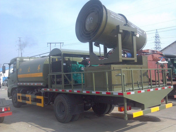 這種車的專業(yè)名稱為車載遠程風送式噴霧機。原理是利用高壓強風將水打散成為帶有負離子和電子的微粒,微小的水粒本身就對空氣中的灰塵和霧霾有一定的吸附能力。再者可以通過在噴灑的水罐中加上消毒降塵的藥水,效果更好。西安的霧炮車啟動霧炮后3至5分鐘,現(xiàn)場PM10濃度從117降到了70,PM2.5從55降到了40??梢娦Ч€是很明顯,尤其是對降低PM10有顯著效果。