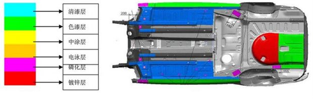 材料上,汽車車身鍍鋅板的用量一直在增加,目前,B級(jí)車絕大部分都是整車采用鍍鋅板,A級(jí)車在關(guān)鍵部位上采用鍍層板;結(jié)構(gòu)上,除了要考慮所設(shè)計(jì)的結(jié)構(gòu)是否容易引起積水和泥土堆積,還需要考慮是否會(huì)形成空腔,結(jié)構(gòu)在電泳時(shí)電泳液的流通是否順暢,影響電泳膜的形成和厚度;工藝上,汽車廠的涂裝車間基本完成了整車的防銹工作,包括磷化、電泳、涂裝、涂膠等,每一道處理之后都會(huì)在汽車的鋼板上形成一道保護(hù)層(磷化層、電泳層……),對(duì)鋼板起保護(hù)作用。