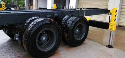 識別雙腔支腿,一種比較簡單的方法,就是從車輛的一側(cè)觀察支腿的固定腔,如果能看到另一側(cè)支腿的固定支腿箱和液壓管路,那就是雙腔支腿。