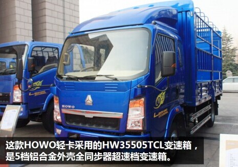 這款HOWO 輕卡采用重汽(HW)變速箱,額定輸入扭矩350N·m,輕型車系列(5),5個(gè)前進(jìn)檔(05),全同步器(T),超速檔(C),鋁合金外殼(L)。