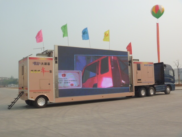 升級(jí)版是LED電子屏式,搭配發(fā)電機(jī)組和電腦,播放宣傳片、廣告片等。造價(jià)相對(duì)較高。但是回報(bào)率也非常高,比卷簾式更容易吸引人的眼球。一般來說根據(jù)車型的大小,可以做到不同尺寸的LED液晶顯示屏,有單色和彩色。彩色的又有不同的色深和像素點(diǎn)距,搭配不同功率的發(fā)電機(jī)組和電腦及散熱系統(tǒng)組成。價(jià)格也根據(jù)車型不同差別較大。