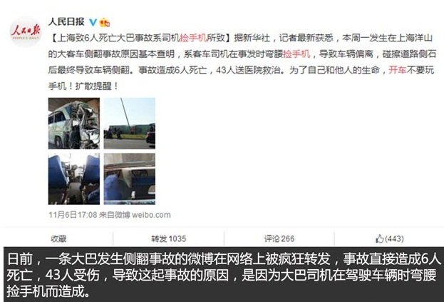 隨著現(xiàn)在通訊的多元化,除了電話,在車上發(fā)微博、玩微信的行為也是大有人在的,這就不光是打電話的聽和說了,已經(jīng)發(fā)展成時不時盯著屏幕看幾秒鐘了,這種行為對于自己和他人都是不負(fù)責(zé)任的,有時候,生與死可能就是1秒鐘的時間差,在您的眼球留在手機屏幕上的那幾秒鐘,有太多的可能會發(fā)生。