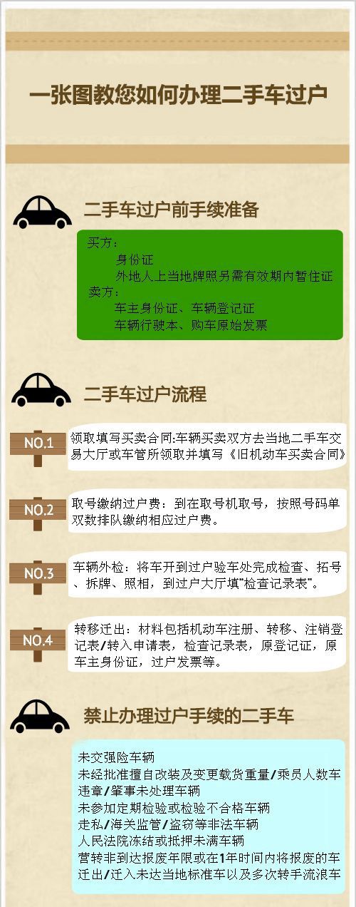 每年年底都是二手車交易高峰期,不管是吸污車灑水車還是平板運輸車吸糞車等專用汽車或者是小轎車等客車。年底很多人有新的計劃換新車,也有很多人接到新的工程需要暫時買二手車過渡。有人買有人賣,車子易主,自然就需要辦理過戶手續(xù),而過戶需要的手續(xù)和整個過戶的流程,想必都是車友們所關心的問題。今天,吸污車廠家專用汽車廠家送你一張圖,讓你統(tǒng)統(tǒng)搞明白!