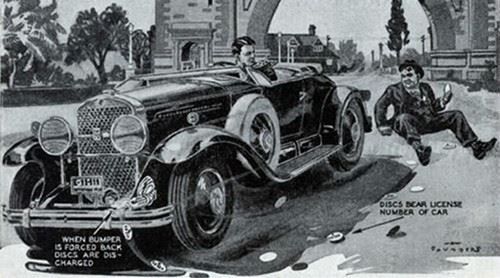 還是美國的《大眾機(jī)械》,1931年登出這樣一個(gè)發(fā)明:在車頭安裝一套記有車主姓名和駕照號(hào)碼的身份牌,一旦撞到行人,這些身份牌就會(huì)自動(dòng)彈出,受害人只需要見到一個(gè)身份牌,就可將肇事者繩之以法。