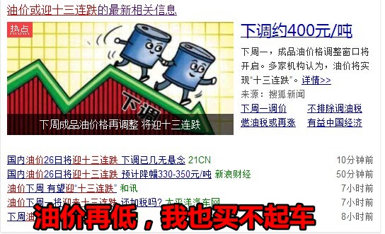 由于國(guó)際貨幣基金組織(IMF)下調(diào)全球經(jīng)濟(jì)增速預(yù)期,加上原油供應(yīng)充裕,國(guó)際油價(jià)20日再次大幅下跌。分析認(rèn)為,由于國(guó)際油價(jià)跌勢(shì)兇猛,國(guó)內(nèi)油價(jià)在下周一有望再次迎來(lái)下調(diào),創(chuàng)下史上首次“十三連跌”。