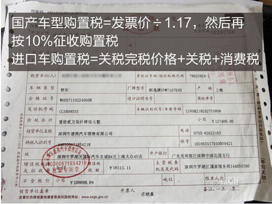在征收車輛購置稅的時(shí)候?qū)嵭械氖菑膬r(jià)定率的計(jì)稅辦法,國產(chǎn)汽車購車發(fā)票中均含17%的增值稅,而計(jì)征購置稅時(shí)需要剔除17%的增值稅,即車輛購置稅計(jì)稅價(jià)格=發(fā)票價(jià)÷1.17,然后再按10%征收購置稅,例如汽車發(fā)票為10萬元,購置稅則為100000÷1.17×0.1=8547元;進(jìn)口車汽車由于包含關(guān)稅,購置稅計(jì)稅價(jià)格=關(guān)稅完稅價(jià)格+關(guān)稅+消費(fèi)稅。
