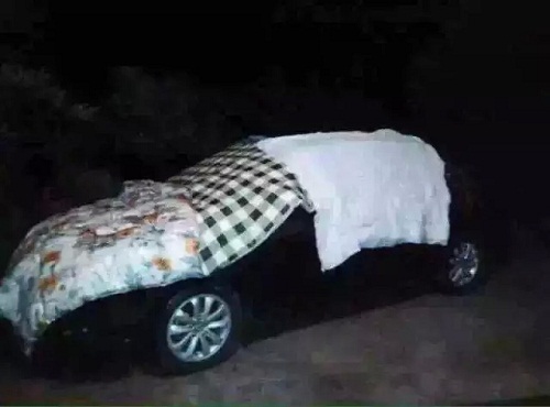 而我們機智的網(wǎng)友早已想好了應(yīng)對,為愛車搭起了“防雹帳篷”▼