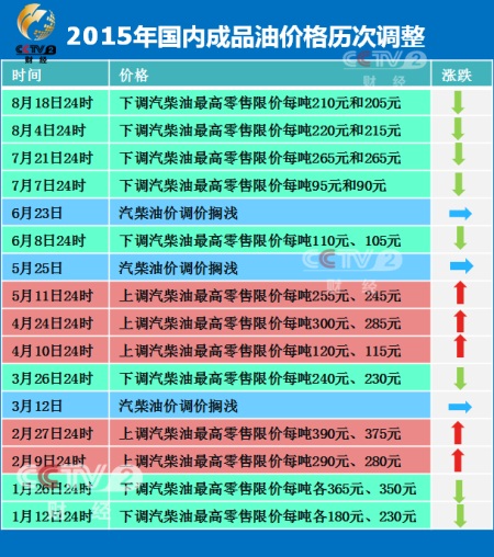 國家發(fā)改委今天宣布,自8月19日0時起下調(diào)國內(nèi)汽柴油價,汽油每噸下調(diào)210元,柴油每噸下調(diào)205元。全國平均來看折合90號汽油每升下調(diào) 0.16元,0號柴油每升下調(diào)0.18元,92號汽油每升降0.17元,95號汽油每升降0.18元。國內(nèi)成品油價格年內(nèi)實現(xiàn)“五連跌”。