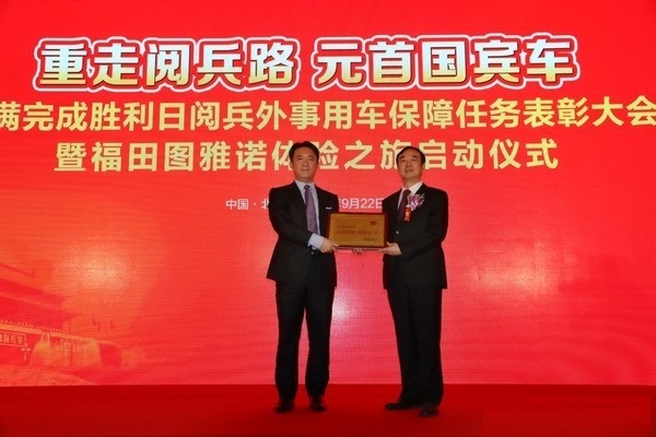 9月22日,北京人民大會堂盛大舉行了勝利日閱兵外事使用車保障任務(wù)表彰大會,北京市人民政府對勝利日閱兵期間做出突出貢獻的福田汽車集團進行表彰,向福田汽車集團頒發(fā)了“品質(zhì)過硬 保障有力”的榮譽稱號。