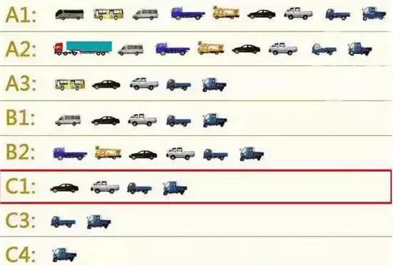 除了上面這個(gè)范疇,C1駕駛證還可以開(kāi)C2、C3、C4的準(zhǔn)駕車(chē)型。