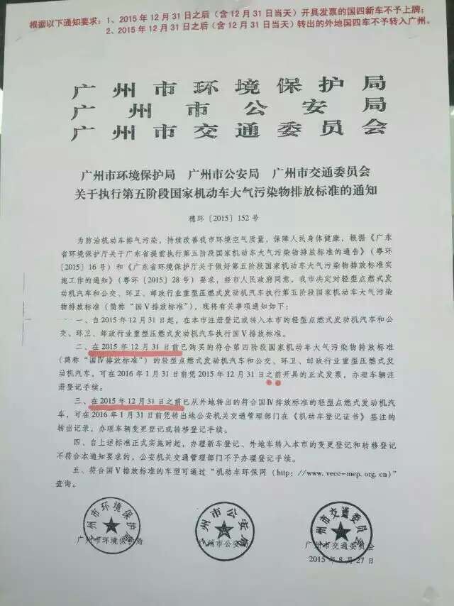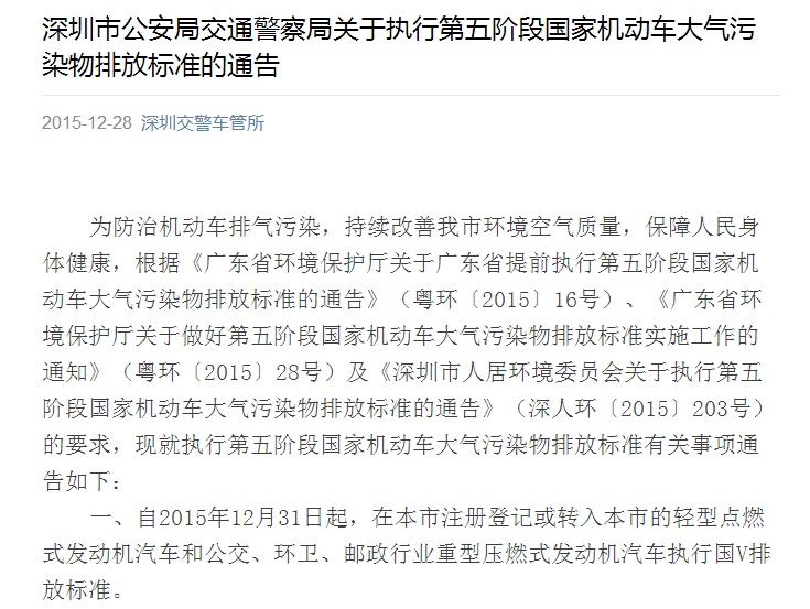 下面是深圳和廣州的國五全面實(shí)現(xiàn)的通告。今天是2015年12月30日,也就是最后一天了。