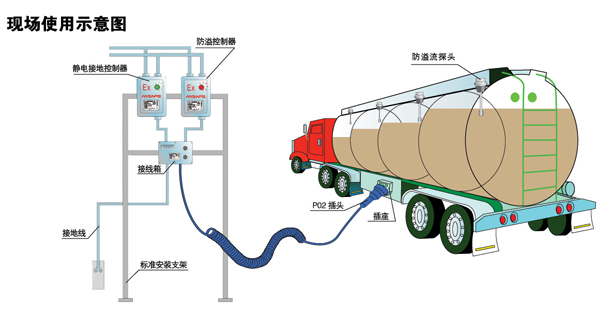 上圖是下裝油系統(tǒng)的整體工作畫面,由此可以看出,靜電接地帶的重要性。大型加油站的這種靜電接地裝置主要是固定式的,這種一般是加油站解決,他們?cè)诖笮偷刂饔蛶旄浇惭b一個(gè),每臺(tái)加油車過來進(jìn)行加油時(shí),可快速連接起來,靜電接地報(bào)警器是油品裝卸場(chǎng)合防靜電的標(biāo)準(zhǔn)化產(chǎn)品,不僅能將液體轉(zhuǎn)運(yùn)過程中產(chǎn)生的靜電導(dǎo)入大地,還能夠全程自動(dòng)檢測(cè)接地狀況。當(dāng)接地不良或斷開時(shí)聲音報(bào)警,以確保生產(chǎn)作業(yè)安全。