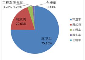 而銷售的純電動專用車主要則以環(huán)衛(wèi)車為主,其占專用車總銷量的比例是75.1%(如圖所示),占整個純電動商用車的比例是72.81%。純電動廂式車主要以純電動物流配送車為主。
