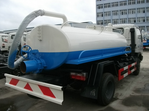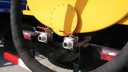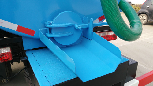 吸糞車排污主要有兩種方式,常用的是罐尾的放糞閥,有特殊要求的情況下可以通過四通閥操作換向,用真空泵向罐內(nèi)加壓將污物從抽吸管道排出。吸污車除了這兩種形式外,罐尾封頭可以通過液壓油缸整體打開,并且罐體可以整體自卸傾倒。