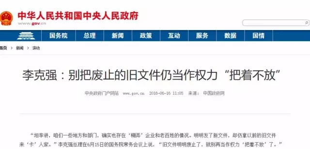 李克強(qiáng):別把廢止的舊文件當(dāng)作權(quán)力“把著不放”