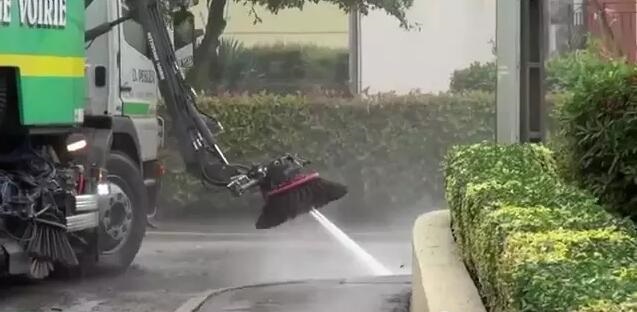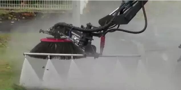 這款清掃車不僅能夠清掃平整的地面,也能清掃凹凸不平的路面。之所以能夠做到這樣,主要還是由于其有“兩把”強(qiáng)勁的刷子,而且在清掃的過(guò)程還有噴頭進(jìn)行降塵、保濕。