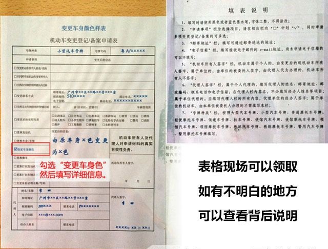 《機動車變更登記/備案申請表》、機動車所有人的身份證明原件及復印件、《機動車登記證書》原件、《機動車行駛證》原件是必須要提交的資料;由于要變更原車的登記資料以及更換原車行駛證,相當于重新辦理新車登記手續(xù),所以變更顏色之前的“舊車”違章罰款需要繳清之后才能辦理哦。