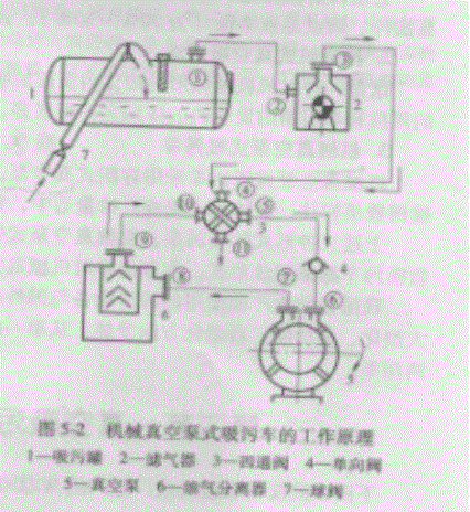 此時如果吸污罐已經(jīng)有一定真空度(一般要在53.3KPa時)打開球閥7,即可向罐內(nèi)吸進污泥,一直到罐體吸滿,上述氣路不變。
