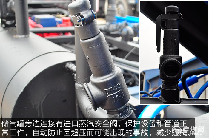 儲(chǔ)氣罐旁邊連接有進(jìn)口蒸汽安全閥,保護(hù)設(shè)備和管道正常工作,自動(dòng)防止因超壓而可能出現(xiàn)的事故,減少損失。進(jìn)口蒸汽安全閥的主要部件彈簧采用進(jìn)口最優(yōu)質(zhì)的鋼材料,確保安全閥靈敏度,保證安全閥準(zhǔn)確起跳與回落。