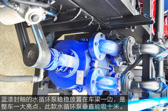 藍(lán)漆封釉的水循環(huán)泵穩(wěn)穩(wěn)放置在車梁一邊,是整車一大亮點(diǎn),具有不泄流,使用壽命長的特性,此 款水循環(huán)泵垂直能吸十米。