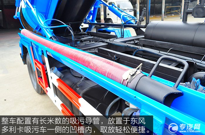 整車配置有長米數(shù)的吸污導(dǎo)管,放置于東風(fēng)多利卡吸污車一側(cè)的凹槽內(nèi),取放輕松便捷。