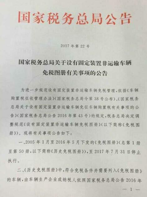 其實垃圾車等環(huán)衛(wèi)車的免征政策一直都在調(diào)整。從2005年6月30日“國稅函[2005]672號”《國家稅務總局關于設有固定裝置的非運輸車輛免征車輛購置稅的通知》開始,根據(jù)《中華人民共和國車輛購置稅暫行條列》第九條第三款“設有固定裝置的非運輸車輛,免稅”的規(guī)定,經(jīng)總局審核確認,下列215種車型屬于設有固定裝置的非運輸車輛(詳見附件),同意免征車輛購置稅。這一免征整車延續(xù)11年后,由于實際用車環(huán)境的變化,尤其是環(huán)衛(wèi)車用戶從政府部門,事業(yè)單位,環(huán)衛(wèi)處逐步變成物業(yè)公司,清潔公司,環(huán)衛(wèi)公司或者個人,國稅總局在2016年6月30日發(fā)文調(diào)整了這一政策。國家稅務總局公告2016年第43號《關于設有固定裝置非運輸車輛免征車輛購置稅有關事項的公告》就作出以下調(diào)整: