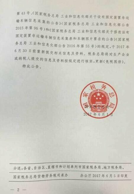 二、生產(chǎn)(改裝)或進口的車輛符合本公告第一條規(guī)定的,按《國家稅務總局 工業(yè)和信息化部關于設有固定裝置非運輸車輛信息采集的公告》(國家稅務總局 工業(yè)和信息化部公告2015年第96號)規(guī)定提交信息、照片及資料掃描件。