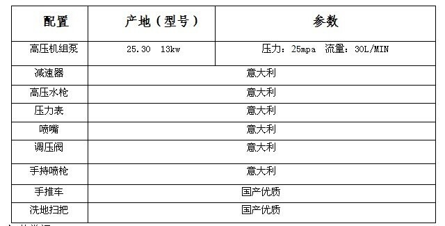 可選裝長警燈,選裝手推式?jīng)_路車,選裝意大利進(jìn)口高壓泵。