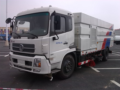 東風(fēng)天錦掃路車配置:采用東風(fēng)天錦二類載貨汽車底盤 ,康明斯210馬力發(fā)動機(jī),3800mm軸距,6檔變速箱,5噸前橋,10噸后橋,9.00R20 16PR輪胎,清水箱容積4.5方,垃圾箱容積7.5方