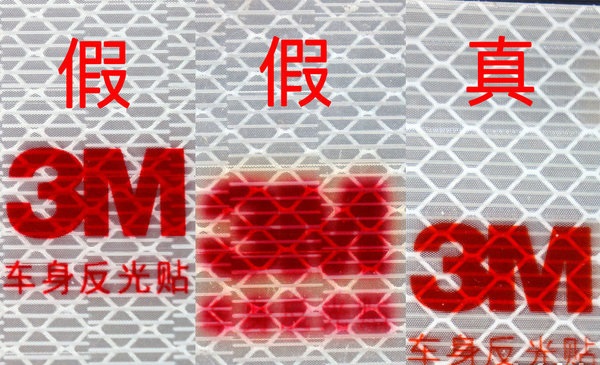 反光貼作為卡車必備的小配件,雖然看上去不起眼,但是因?yàn)橐?guī)定每輛車都必須要設(shè)置,所以在市場(chǎng)上也充斥著大量的假貨。以常見(jiàn)的3M反光貼為例,真?zhèn)巫蠲黠@的區(qū)別就是通過(guò)反光貼上的信息標(biāo)識(shí)進(jìn)行判斷。正品3M反光貼紙會(huì)清晰的標(biāo)注著制造商標(biāo)識(shí)、3C認(rèn)證標(biāo)識(shí)以及產(chǎn)品等級(jí)三種信息,如果沒(méi)有任何信息或者信息不全的就肯定是假貨。