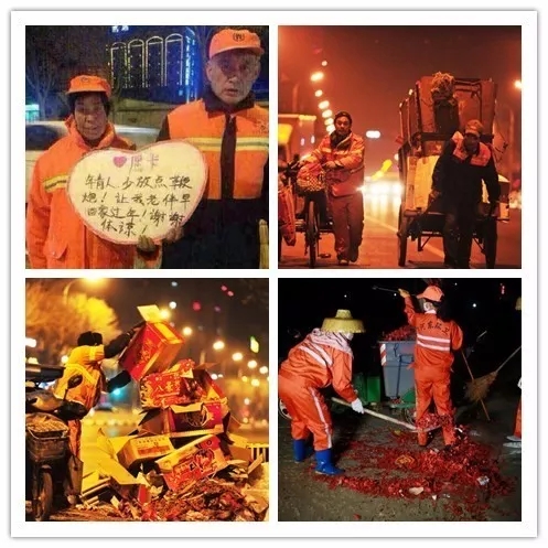“少放點鞭炮,讓我老伴早點回家過年!”,2017年2月4日,一張環(huán)衛(wèi)工夫婦呼吁少放鞭炮的圖片在微博、微信朋友圈中瘋傳。