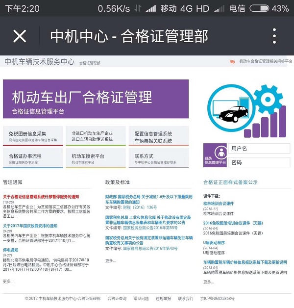 中機(jī)中心系統(tǒng)升級 車輛上戶、合格證上傳滯緩