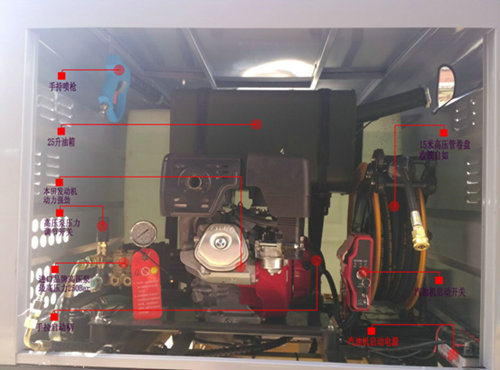 ◆ 清洗泵單元:本田發(fā)動機配備德國水泵。發(fā)動機采用電子打火,加裝25升大容量油箱。水泵輸出250公斤壓力,清潔能力強。