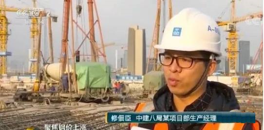 中建八局某項目部生產(chǎn)經(jīng)理 修經(jīng)理:目前我們鋼筋的市場價格 在每噸4300元到4500元左右,去年同期鋼材的價格 大概在每噸2800元 。