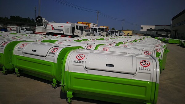 常見的勾臂式垃圾車所搭配的垃圾箱,有梯形、半弧形和上下圓?。ㄎ宜緦I(yè)一次鍛壓成型板材經(jīng)過全自動機(jī)器人切割后焊接而成,強(qiáng)度更大,容量更多,更美觀,減少泄漏,經(jīng)久耐用。價格一樣實惠)。