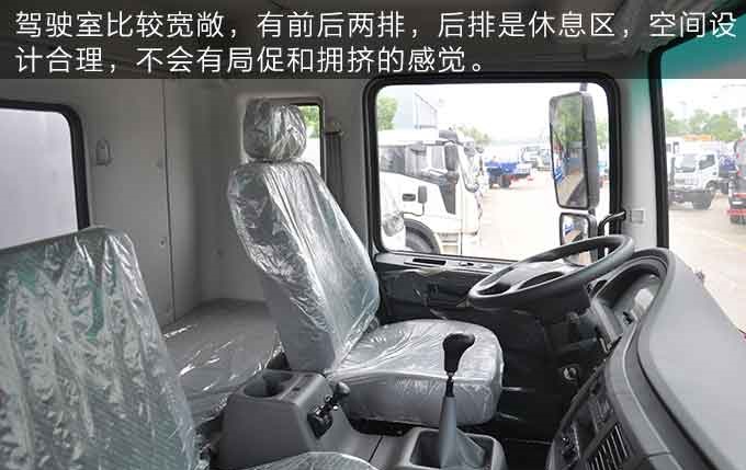打開東風(fēng)多利卡D9吸污車的車門,可以看到這款車的駕駛室比較寬敞,有前后兩排,前排能同時(shí)坐下三人,后排是休息區(qū),空間設(shè)計(jì)合理,不會(huì)有局促和擁擠的感覺。因?yàn)榈妆P較高,所以,駕駛室的視野比較開闊。