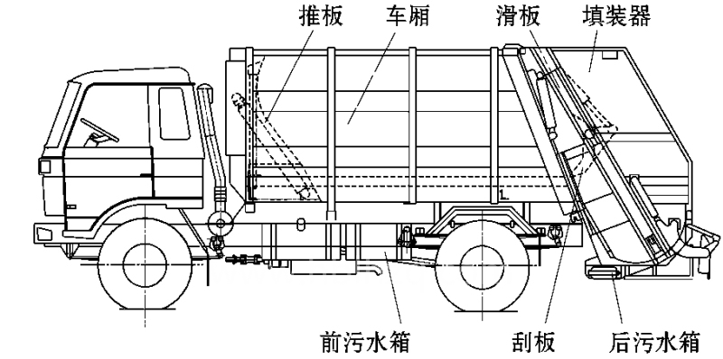 圖1.壓縮式垃圾車的整體結(jié)構(gòu)