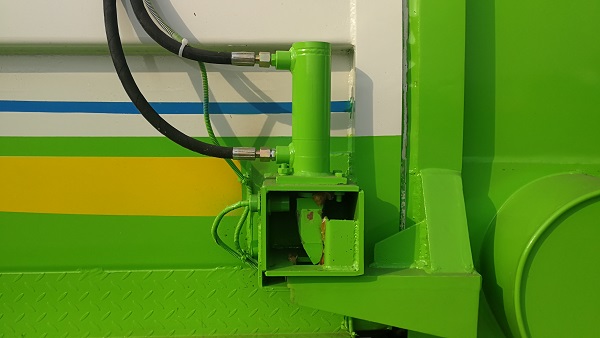 密封處理消除二次污染垃圾在縮裝填和運(yùn)送進(jìn)程中處于關(guān)閉狀況,垃圾箱與填裝器接合面用特制的橡膠密封條密封,垃圾箱前端有由垃圾箱和推鏟后部構(gòu)成的污水箱其體積達(dá)1.35m,填裝器下部有體積達(dá)0.3m的污水箱。