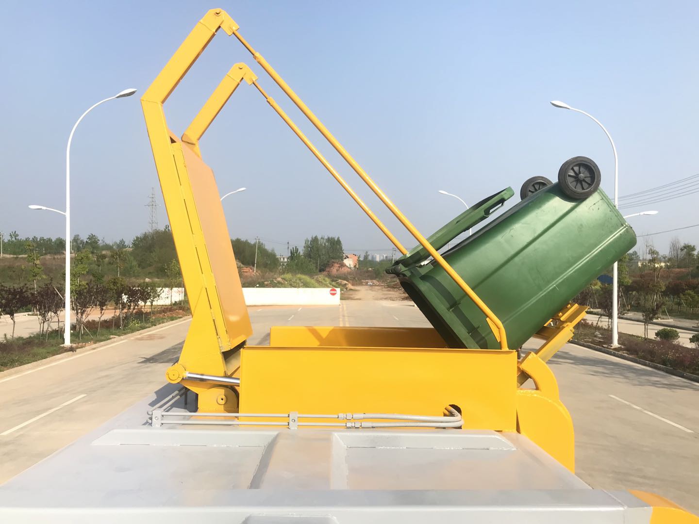 掛桶提升機(jī)采用新式加強(qiáng)型結(jié)構(gòu),與垃圾箱體滿焊連接,穩(wěn)固可靠!提升機(jī)油缸采用廈門銀華一線品牌,經(jīng)久耐用!并安裝有電子限位裝置,完全避免配套件和安裝誤差積累而導(dǎo)致的提升機(jī)各類故障!進(jìn)料口加裝有避風(fēng)擋板,從而減少輕型垃圾在傾倒過程中的飛揚(yáng)造成的二次污染!