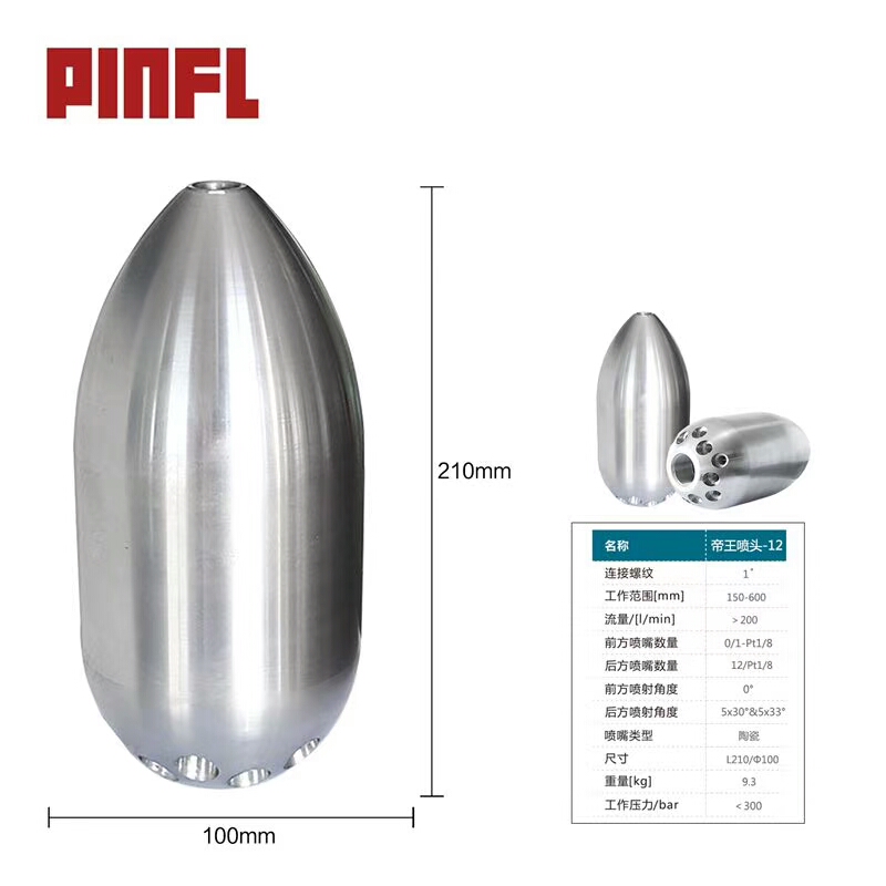 1號(hào)噴頭噴射角為(噴射角決定實(shí)用管道直徑以及推進(jìn)力和清潔度)25°,2號(hào)35°,3號(hào)40°,4號(hào)45°,5、6號(hào)40°,7號(hào)40°,8、9號(hào)45°。