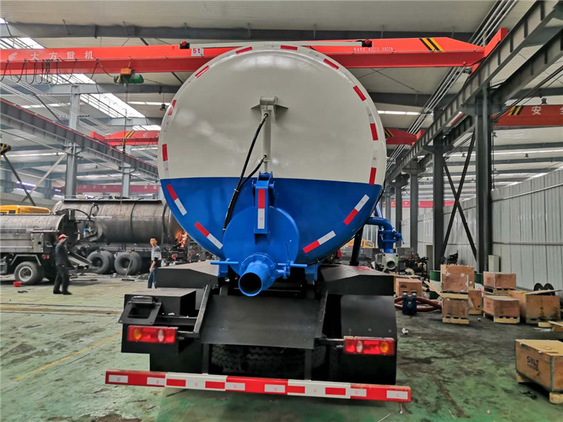上裝配置:罐體實際容積18至20立方,采用國標(biāo)武鋼碳鋼板制作,6至8mm,裝配大功率專用真空吸污泵, 專用部分由真空吸污泵、取力器、傳動軸、水氣分離器、油氣分離器、多路換向閥、罐體、放污閥、視污窗、真空壓力表、管網(wǎng)系統(tǒng)、液壓系統(tǒng)等組成。 后門為液壓開關(guān)帶自卸卸料功能.排污口為氣動打開關(guān)閉.配8米吸污管一根.帶洗手小水箱一個.東風(fēng)專底后八輪吸污車圖片展示: