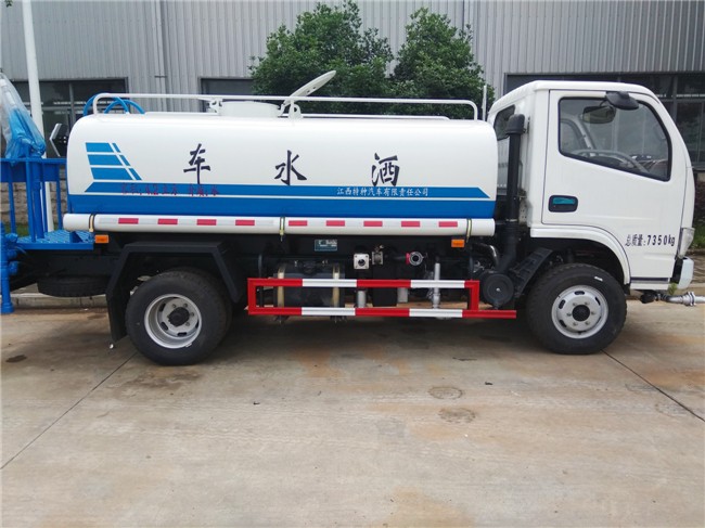 5方國五多利卡灑水車:底盤采用東風(fēng)福瑞卡,3308mm軸距,7.00鋼絲胎,ABS,全柴95馬力,萬里揚5檔變速箱,帶動轉(zhuǎn),汽剎,有免證,嚴格按公告尺寸生產(chǎn)。前沖后灑,后工作平臺帶高炮,右位花灑,側(cè)噴。