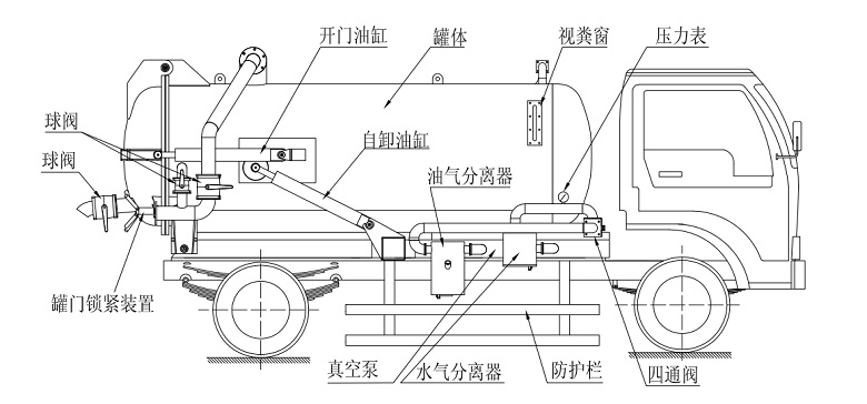 上裝配置:專用部分由取力器、傳動軸、真空吸污泵、壓力罐體、液壓部分,管網(wǎng)系統(tǒng)、真空壓力表、視糞窗、洗手裝置等組成,隨車配置大功率真空吸污泵和優(yōu)質(zhì)液壓系統(tǒng),罐體封頭一次壓鑄成型、罐體可后開、雙頂自卸。罐內(nèi)污物可通過后蓋直接傾倒,具有真空度高(比吸糞車的吸力更大)、噸位大、效率高、用途更廣泛等特點。油水分離器,水氣分離器,液壓自卸裝置,專用真空吸污泵,容積壓力表,吸物導(dǎo)管,自流閥,真空罐體,連通器(視糞窗),全自動防溢閥,液壓套件。采用吸污專用泵,吸力大,吸程遠,特別適合用于市政環(huán)衛(wèi),廠區(qū),礦山,小區(qū)等下水道內(nèi)的淤積物的抽吸、裝運和排卸,尤其是可吸下水道泥漿、淤泥、石子、磚塊等較大物體、含水量較小等物質(zhì)。抽滿污(糞)罐體時間:≤5min,吸程:≥10m。自吸自排,壽命長,工作速度快,運輸方便。吸污車與吸糞車具有相同原理,但吸污車又與吸糞車有著不同用途。區(qū)別就在于吸污車罐體為圓形罐,結(jié)構(gòu)更緊密,可以耐更高壓力提供更大的吸力,可用于收集清理運輸污水,污泥。