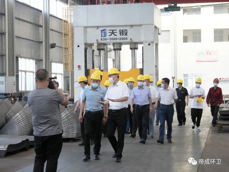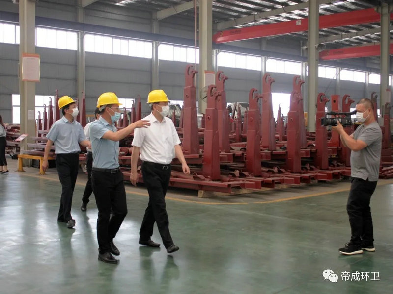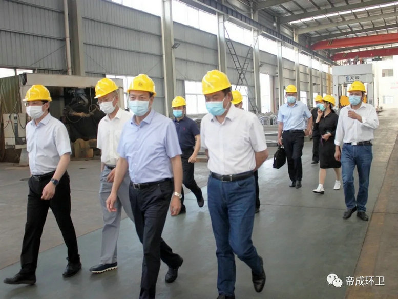 2020年5月26日上午9點,隨州市市委書記陳瑞峰、市領導林常倫、劉宏業(yè),在市發(fā)改委、市經(jīng)信局、市政務服務和大數(shù)據(jù)局主要負責同志的陪同下蒞臨湖北帝成環(huán)衛(wèi)科技有限公司參觀視察,調(diào)研全市優(yōu)化營商環(huán)境工作及疫后復工復產(chǎn)工作情況。